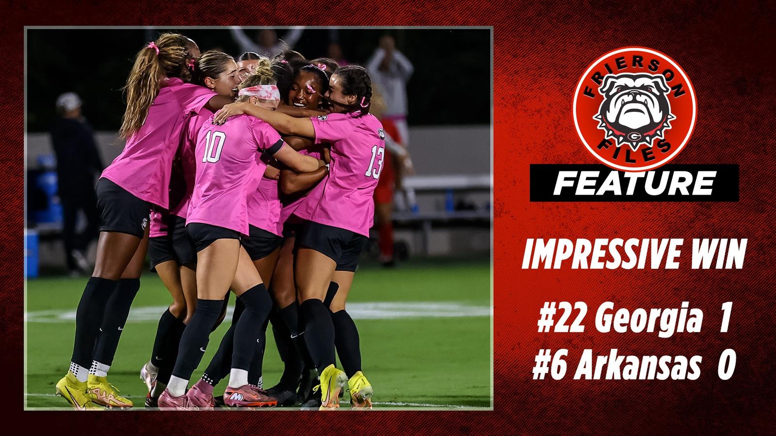 From the outset Friday, Georgia tried to bring the attack to Arkansas, putting together multiple scoring chances in the early minutes, and dictating play as much as possible. McAlpine said the team has worked a lot on the energy required to play against Arkansas’ aggressive style.