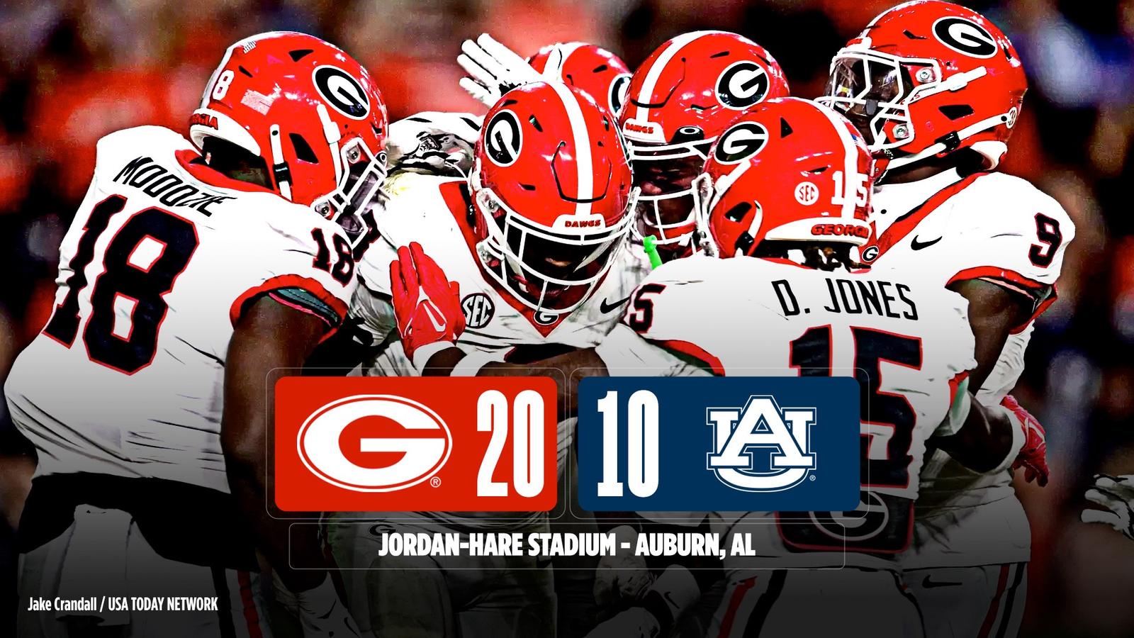 The Bulldog defense held Auburn scoreless for nearly the final three quarters after forcing a touchdown-saving turnover late in the second quarter to keep Georgia close. The Bulldogs (5-1, 3-1 SEC) got a field goal late in the half to make it 10-3, and then dominated the final two quarters.
