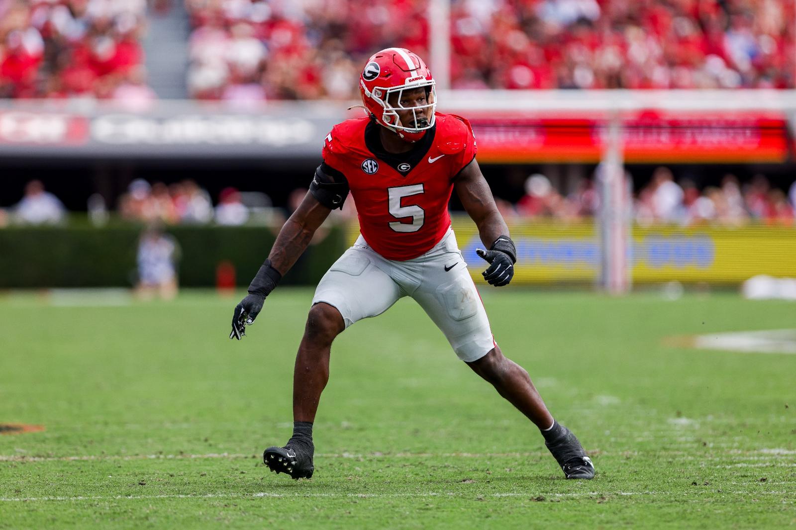 Georgia inside linebacker Raylen Wilson (5) during Georgia’s game against Kentucky at Sanford Stadium in Athens, Ga., on Saturday, Oct. 4, 2025. (Conor Dillon/UGAAA)