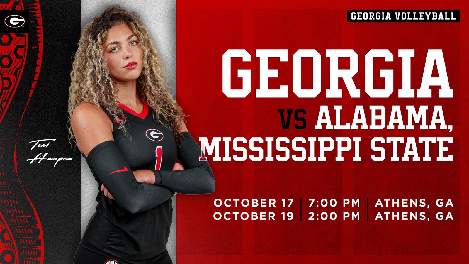 Georgia volleyball returns to Stegeman Coliseum this week to host Alabama on Friday and Mississippi State on Sunday. Friday’s 10K Day match will begin at 7 p.m. and will air live on SEC Network. Sunday’s battle of the Bulldogs will begin at 2 p.m. Admission is free to both matches.