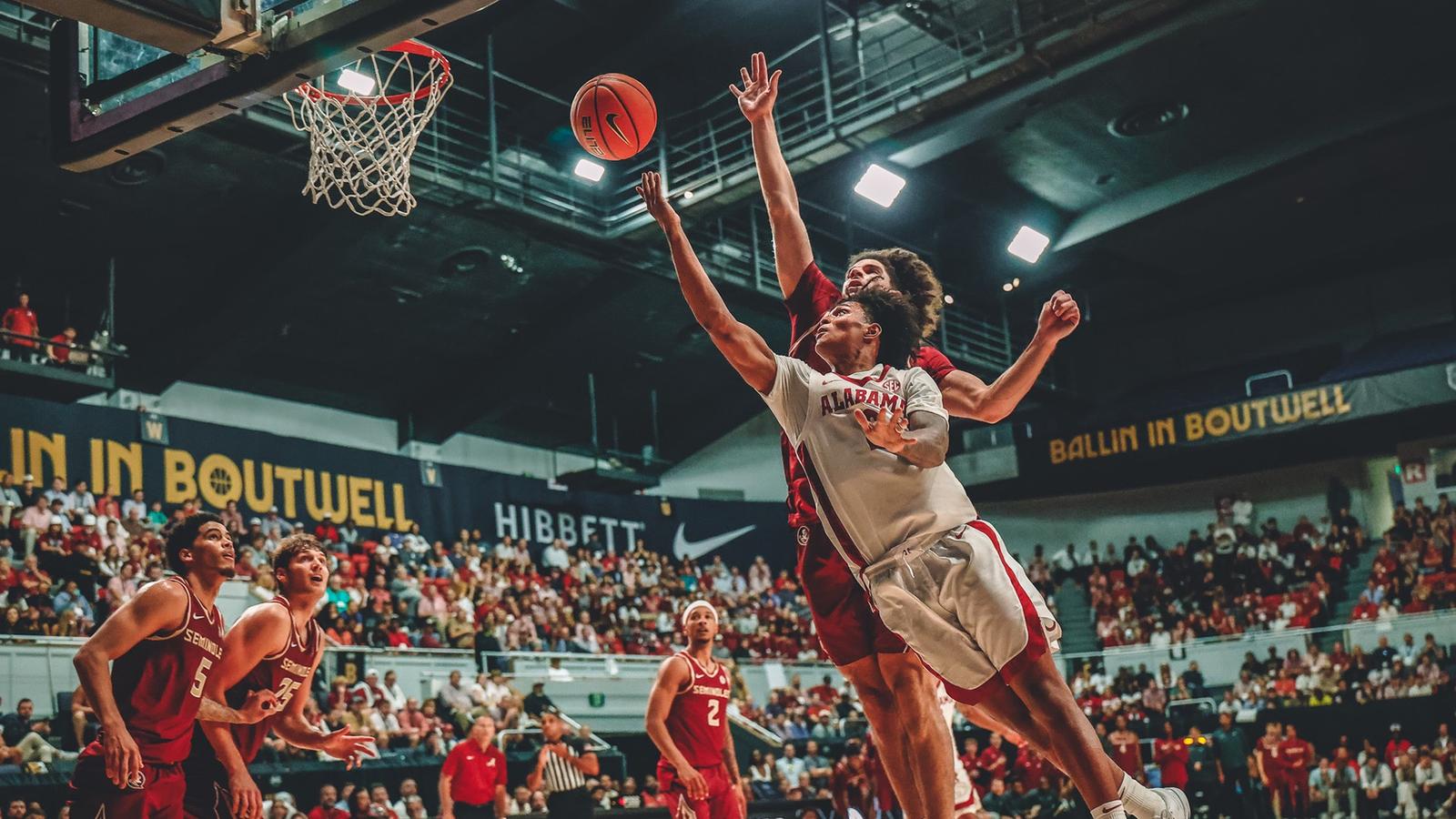 BIRMINGHAM, Ala. – The No. 15 Alabama men’s basketball team opened the 2025-26 season with an exhibition victory over Florida State, 109-105, in front of a sold-out crowd at Boutwell Auditorium.
