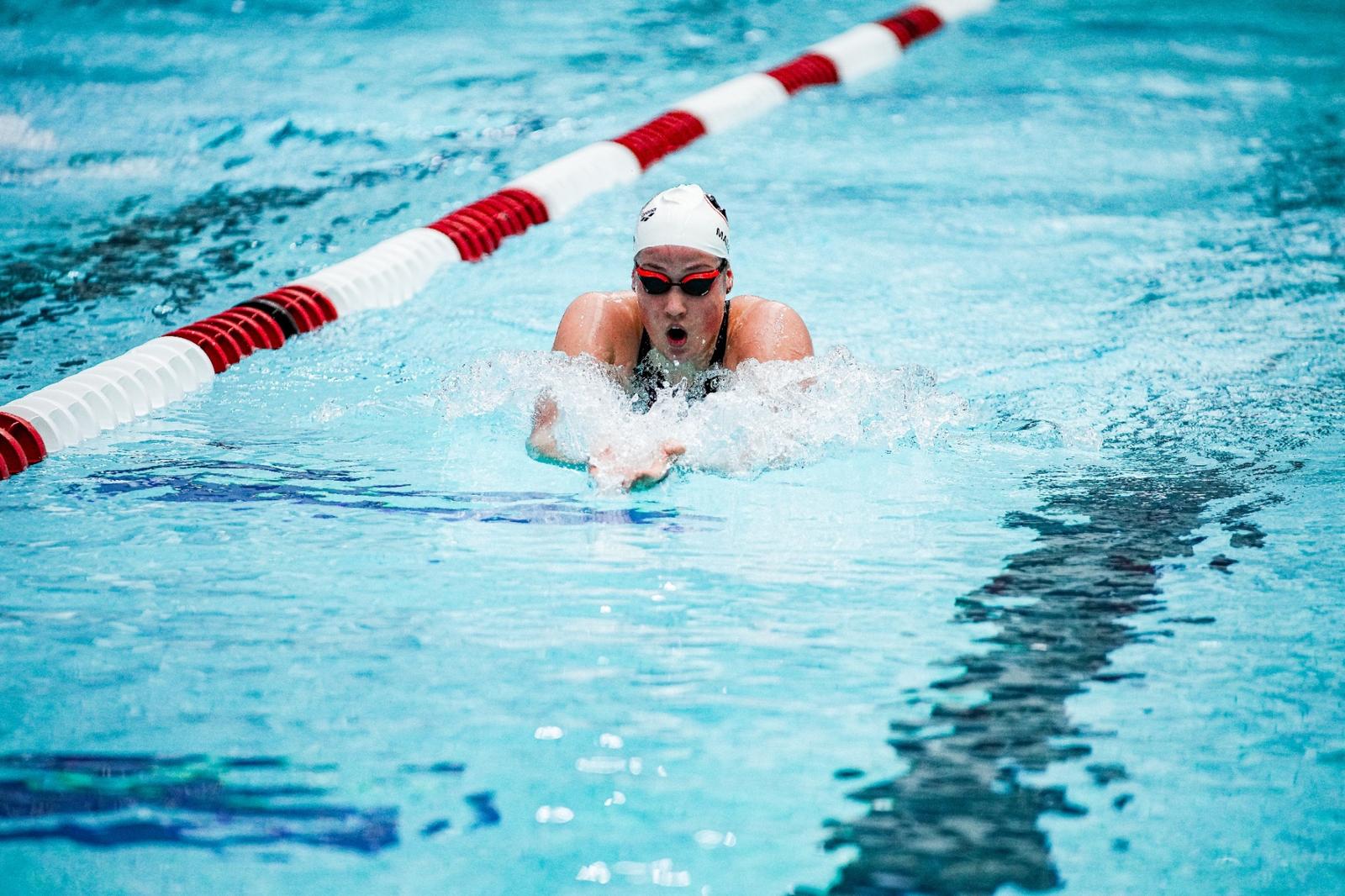 - Women’s 100y Breaststroke – Freshman Elizabeth Nawrocki finished sixth with a personal-best NCAA cut of 1:00.11, while sophomore Charlotte Headland placed eighth with a PB of 1:00.61. Senior Elizabeth Isakson finished 17th with a time of 1:02.19.