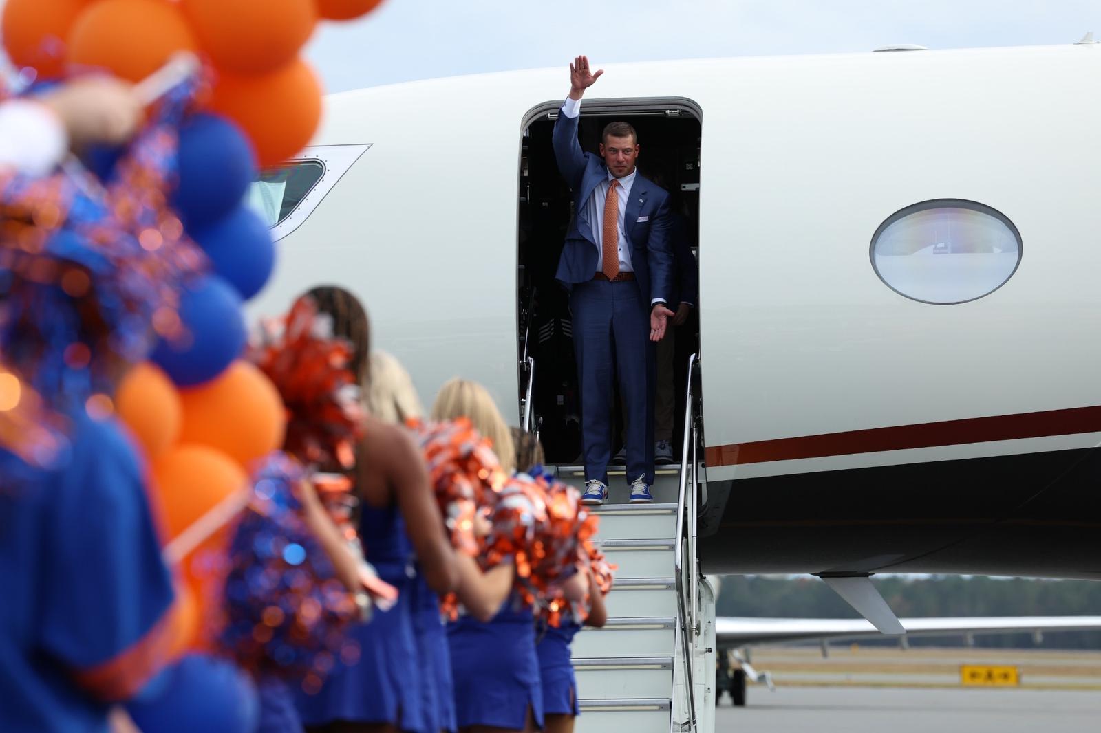One of his final stops on a whirlwind Monday was Ben Hill Griffin Stadium. As Tom Petty’s “I Won’t Back Down” blasted across the empty stadium, Sumrall and his family took photos at midfield, while his image adorned the large video boards at each end.