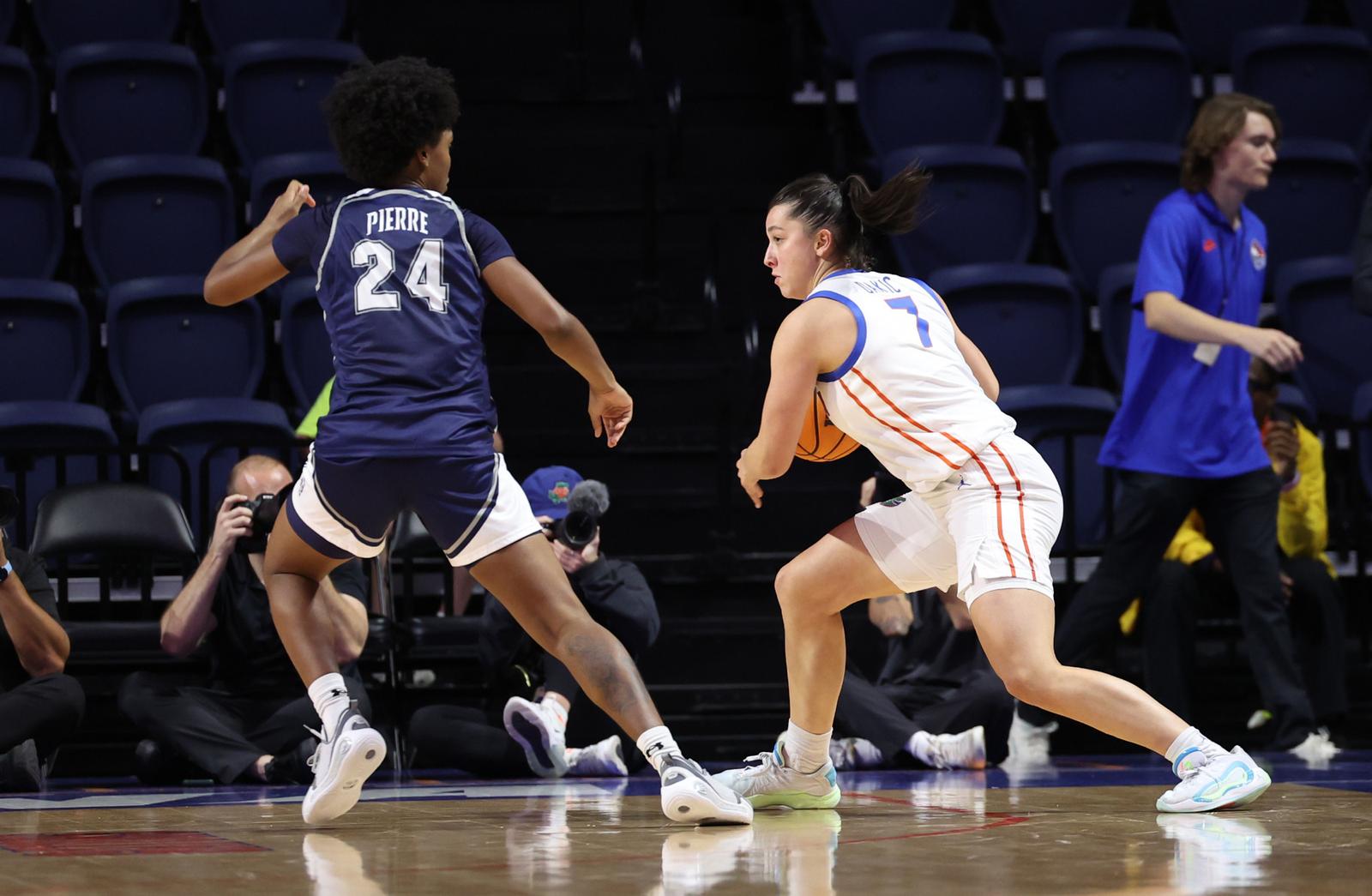 The Gators are coming off a tough, 68-64 road loss at Virginia Tech which dropped their overall record to 8-2 on the season. Liv McGill, whose 26.8 points per game rank third in the nation as of Dec. 4, scored a game-high 30 points, and Laila Reynolds added 10, but it wasn’t enough for Florida to overcome its 22 turnovers.