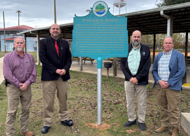 Walton County – 12/01/25 – Today, a true hometown hero was honored in Paxton. District 2 Commissioner Danny Glidewell and District 1 Commissioner Dan Curry were on hand for the official unveiling of the new sign commemorating William ‘Bill’ D. White, a Paxton native whose legacy reaches far beyond Walton County.