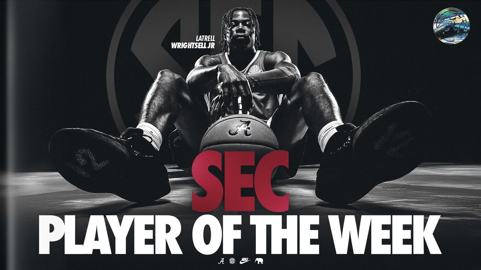 TUSCALOOSA, Ala. – Alabama men’s basketball guard Latrell Wrightsell Jr. has been named the Southeastern Conference Co-Player of the Week along with Missouri’s Mark Mitchell, the league office announced Monday afternoon.